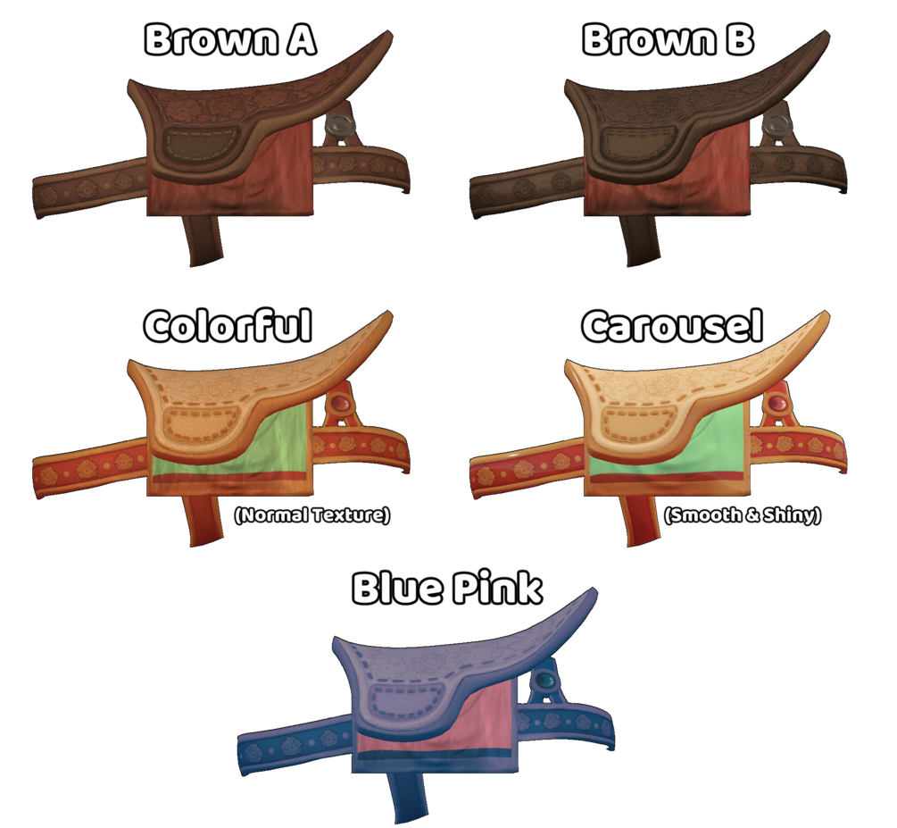 Available in 2 variants of dark brown leather & one bright colorful variant reminiscent of a Carousel horse.