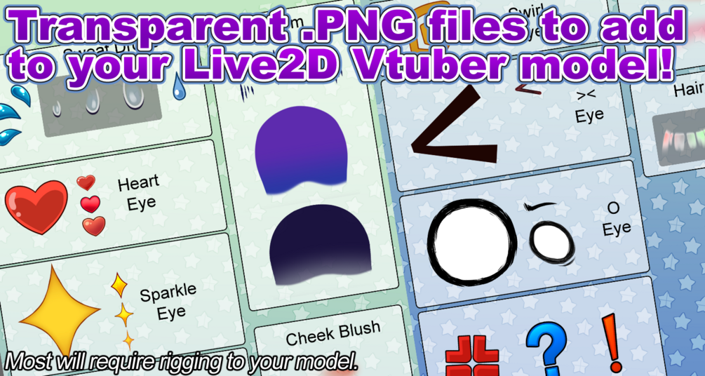 These are assets I make frequently for Live2D commissions. I figure I can offer them here as a premade set for better cost efficiency!~